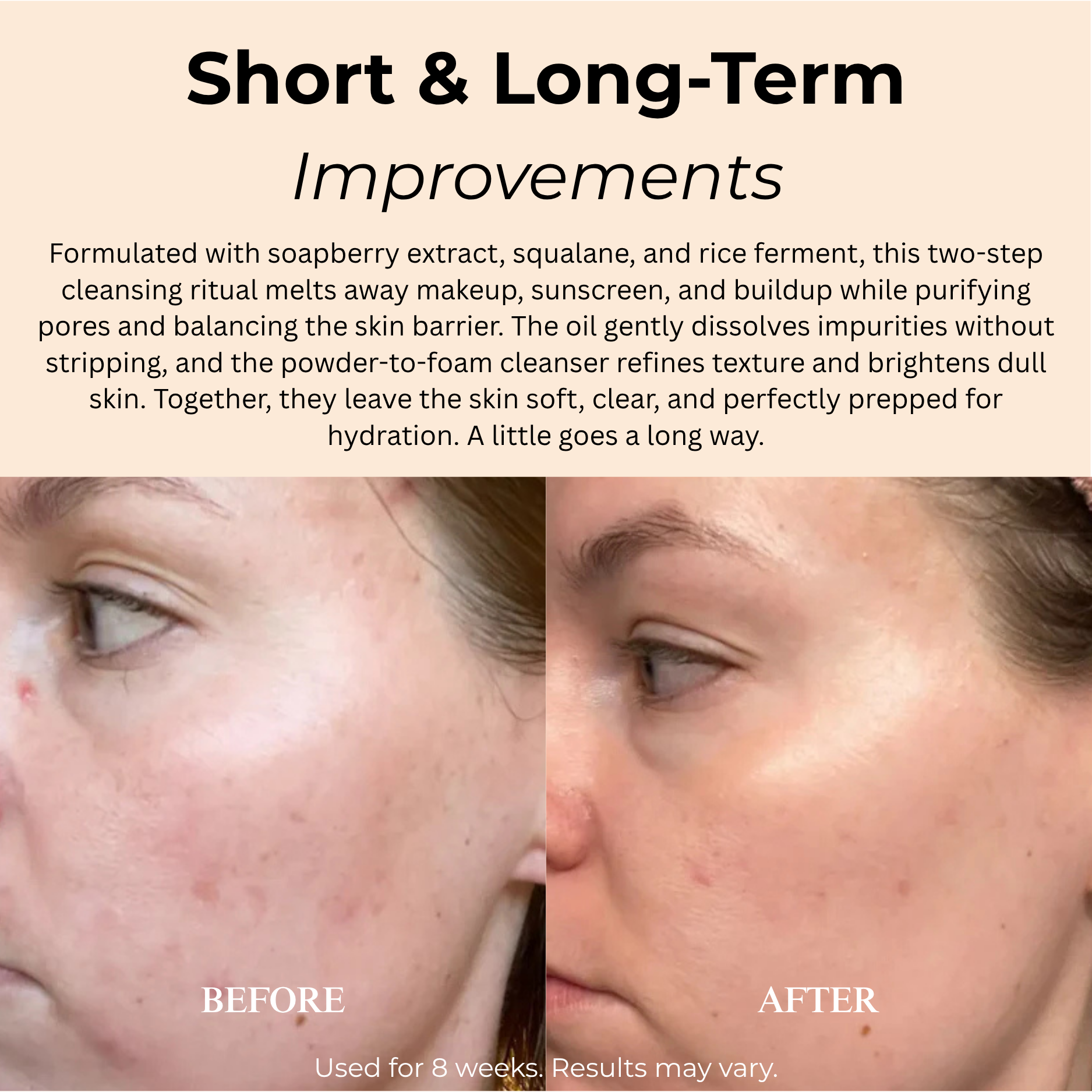 A powerful two-step routine featuring Soapberry Cleansing Oil to dissolve makeup and impurities, followed by Rice Powder Cleanser to gently exfoliate and refresh. Leaves skin soft, balanced, and radiant.