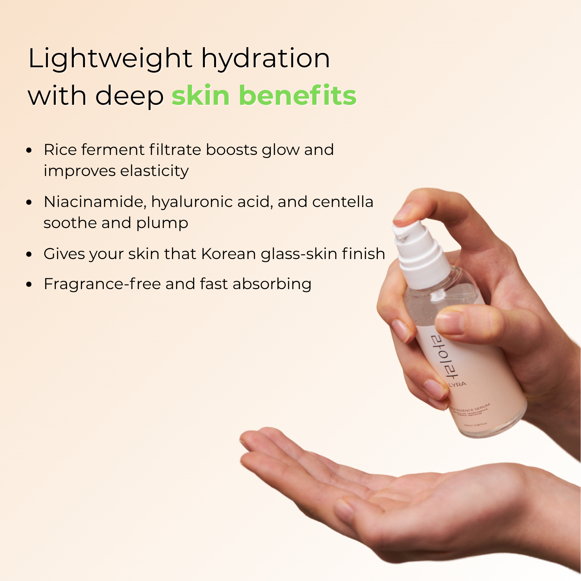 Powered by Rice Ferment Filtrate, Hyaluronic Acid, Centella Asiatica Extract, Probiotics, and Niacinamide, this essence serum deeply hydrates, soothes, and strengthens the skin barrier. Hyaluronic Acid delivers long-lasting moisture, while Niacinamide brightens and evens skin tone. Probiotics and Centella Asiatica work together to calm irritation and support a healthy, balanced complexion.